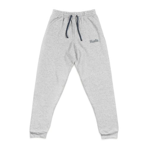Joggers — Embroidered “Hustle.” Crewneck Lounge Pants, Soft Grey Athletic Sweatpants for Everyday Wear